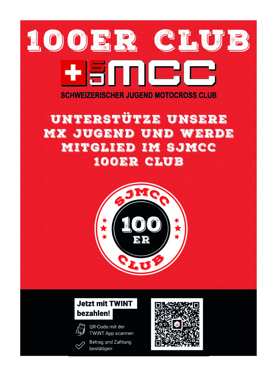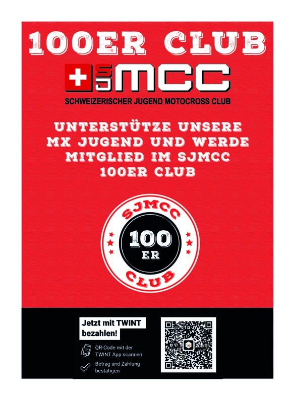 Mit einem Gönnerbeitrag von jährlich 100 Franken bewirkst Du für unsere Motocross-Jugend Grosses und ermöglichst unseren Jungs und Girls tolle Erlebnisse auf und neben der Rennpiste. Mach mit im "SJMCC 100er Club" und unterstütze damit den Schweizer Jugend Motocross Sport. Herzlichen Dank für Dein Engagement.